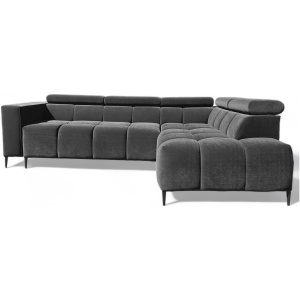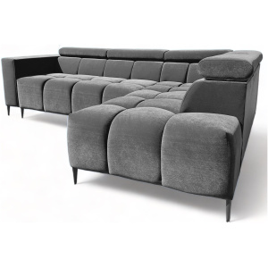 Nowoczesny narożnik welurowy z pikowanym siedziskiem i regulowanymi zagłówkami