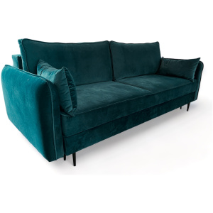 Nowoczesna sofa welurowa w kolorze butelkowej zieleni